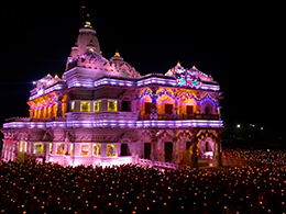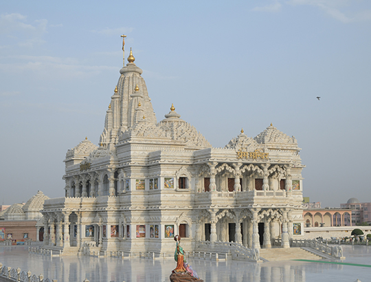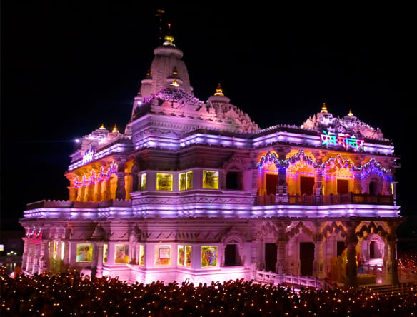 Prem Mandir (The Temple of Divine Love) is a Hindu temple in Shri Vrindavan Dham, Uttar Pradesh, India, which was established and inaugurated by Jagadguru Shri Kripalu Ji Maharaj in February 2012. This temple has become the modern epicentre of Vrindavan, in the holy land of Braj, where Shri Radha Krishna descended about 5,000 years ago and performed divine leelas (pastimes).
